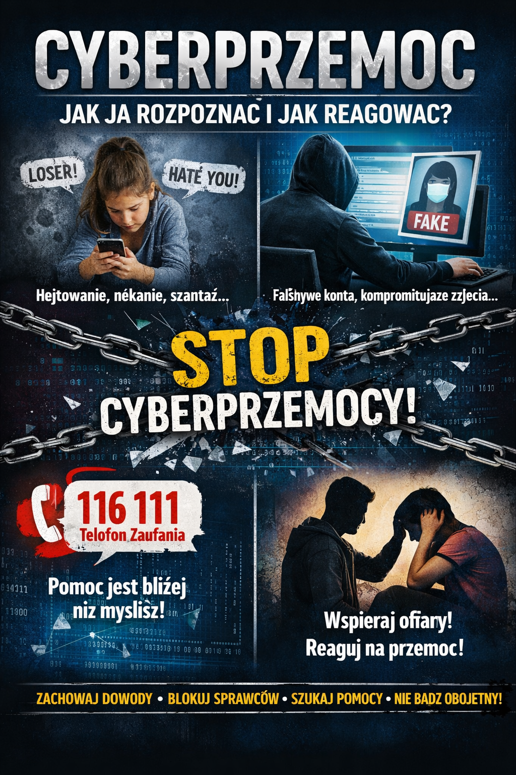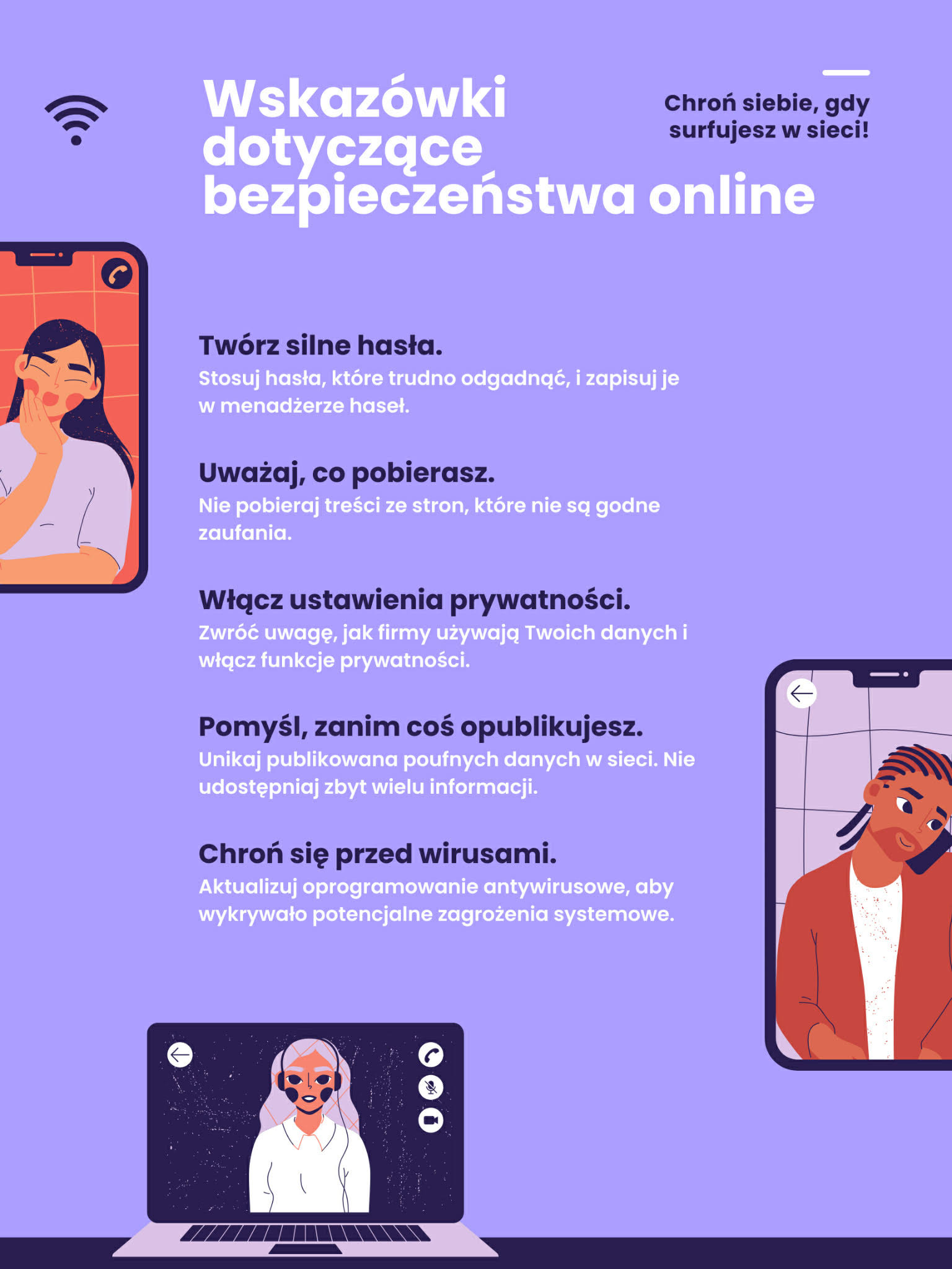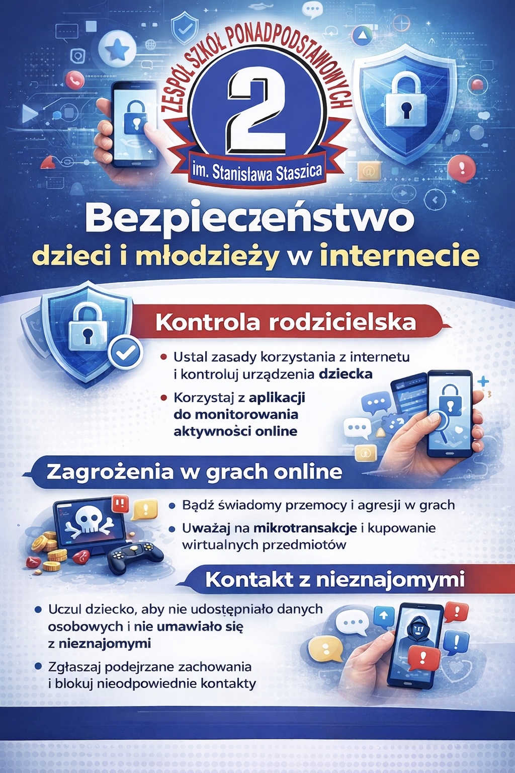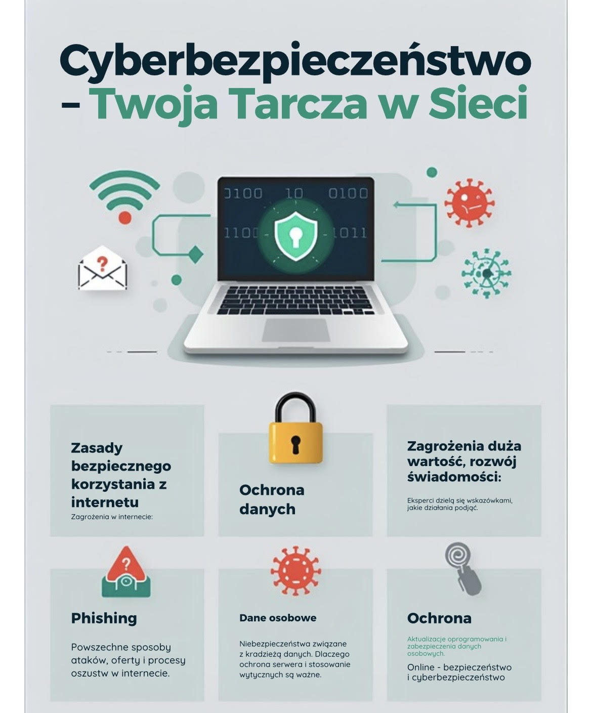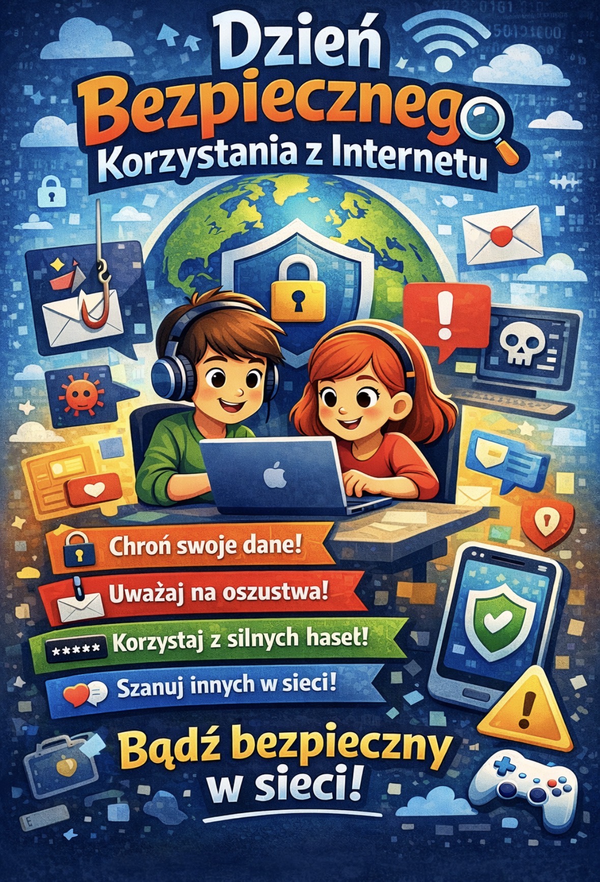 W ramach akcji nasi uczniowie przygotowali plakaty w formie cyfrowej, promujące zasady bezpiecznego poruszania się w internecie. Już wkrótce ukaże się także gazetka szkolna, stworzona na podstawie ich prac.