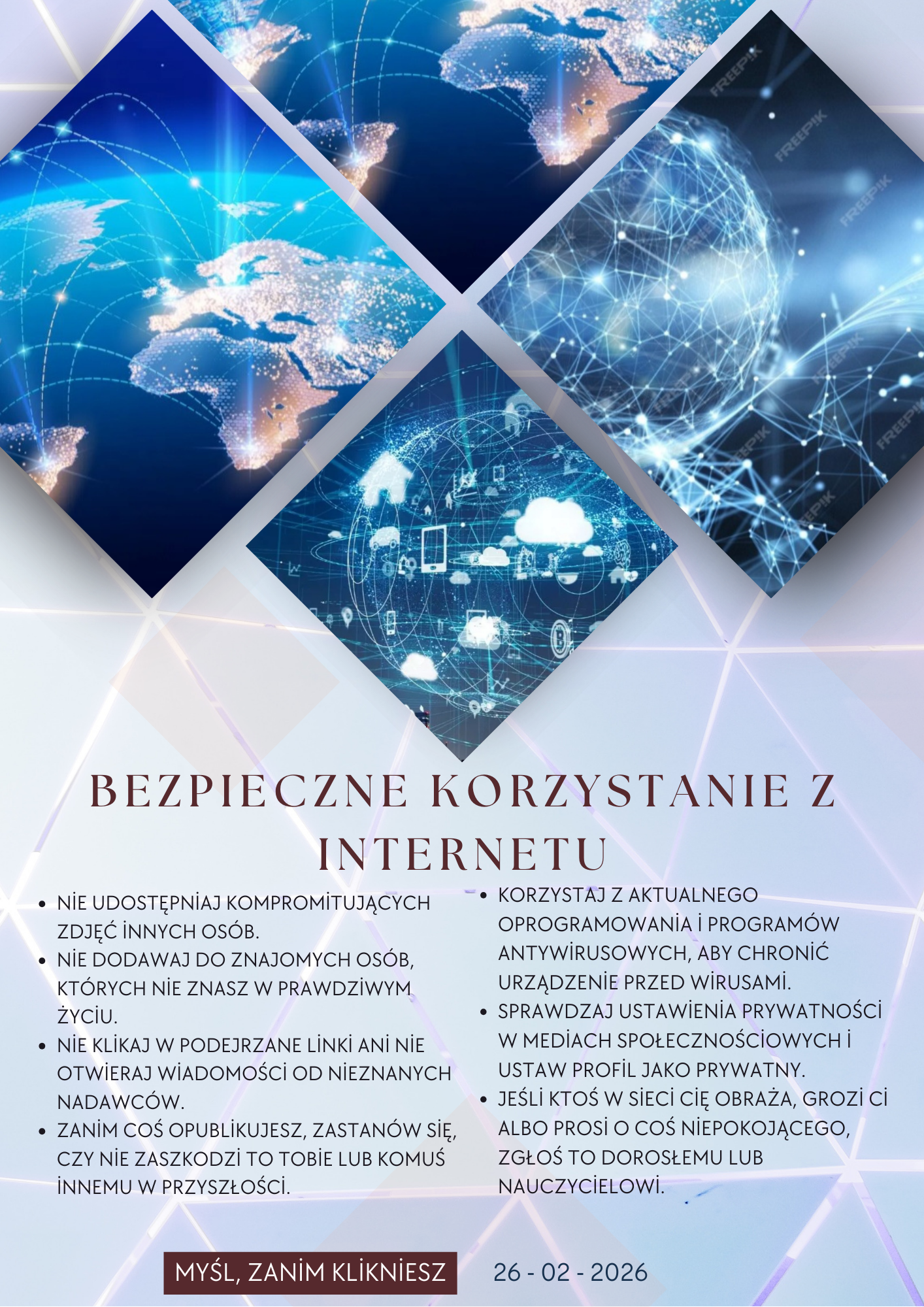 Uczniowie klasy 1 i 4 Technikum Reklamy włączyli się w ogólnopolską akcję DBI – Dnia Bezpiecznego Internetu. Ta inicjatywa została ustanowiona w 2004 roku i dziś jest realizowana na całym świecie, promując bezpieczne i odpowiedzialne korzystanie z sieci.