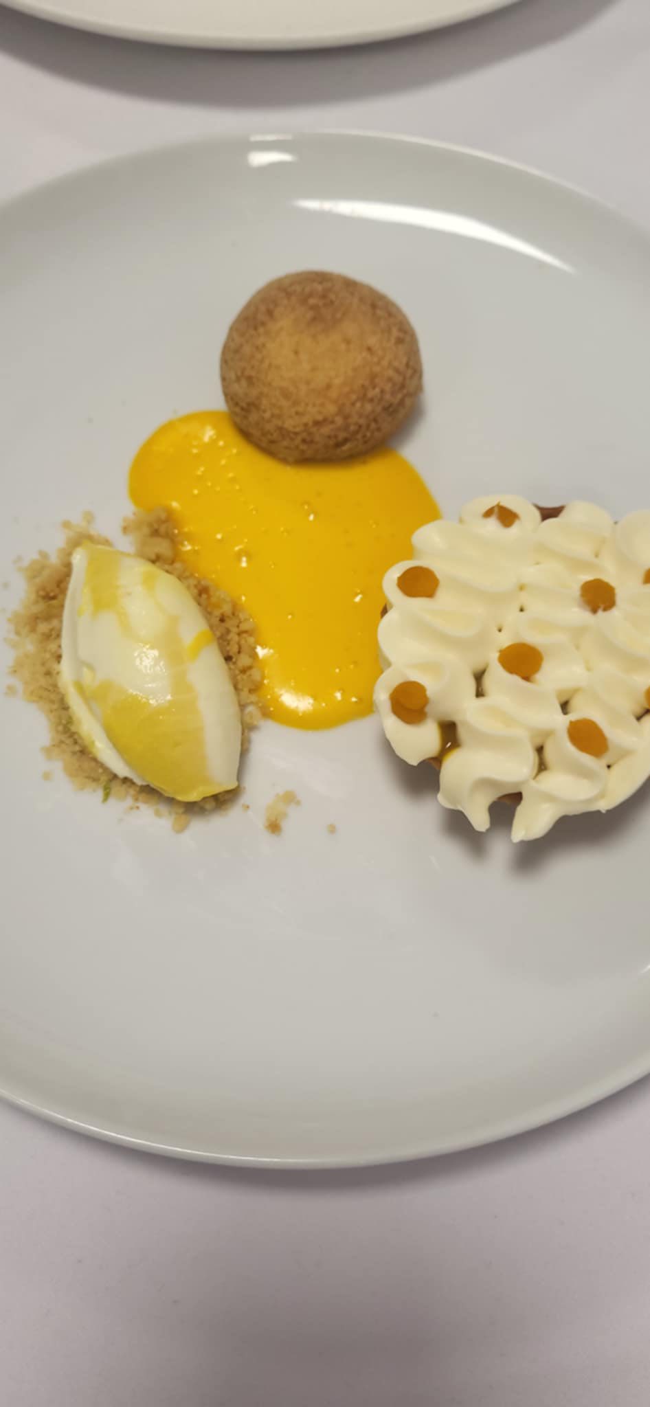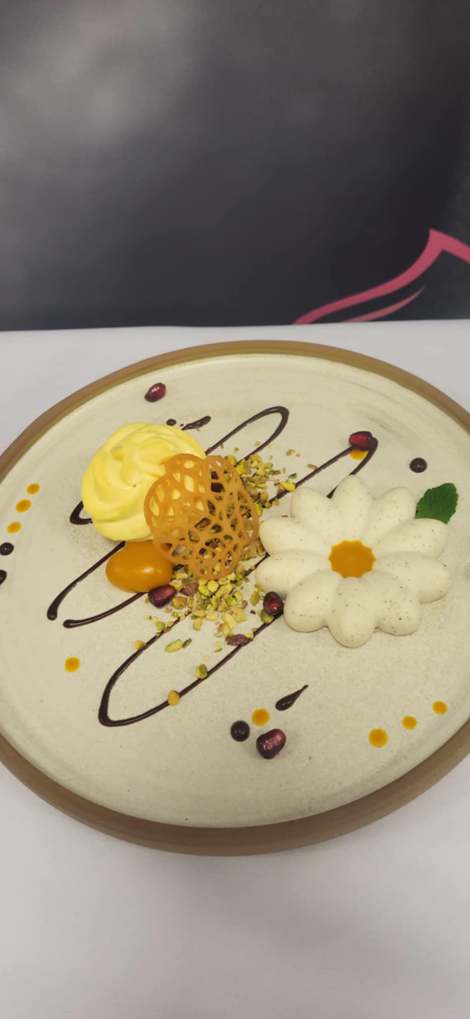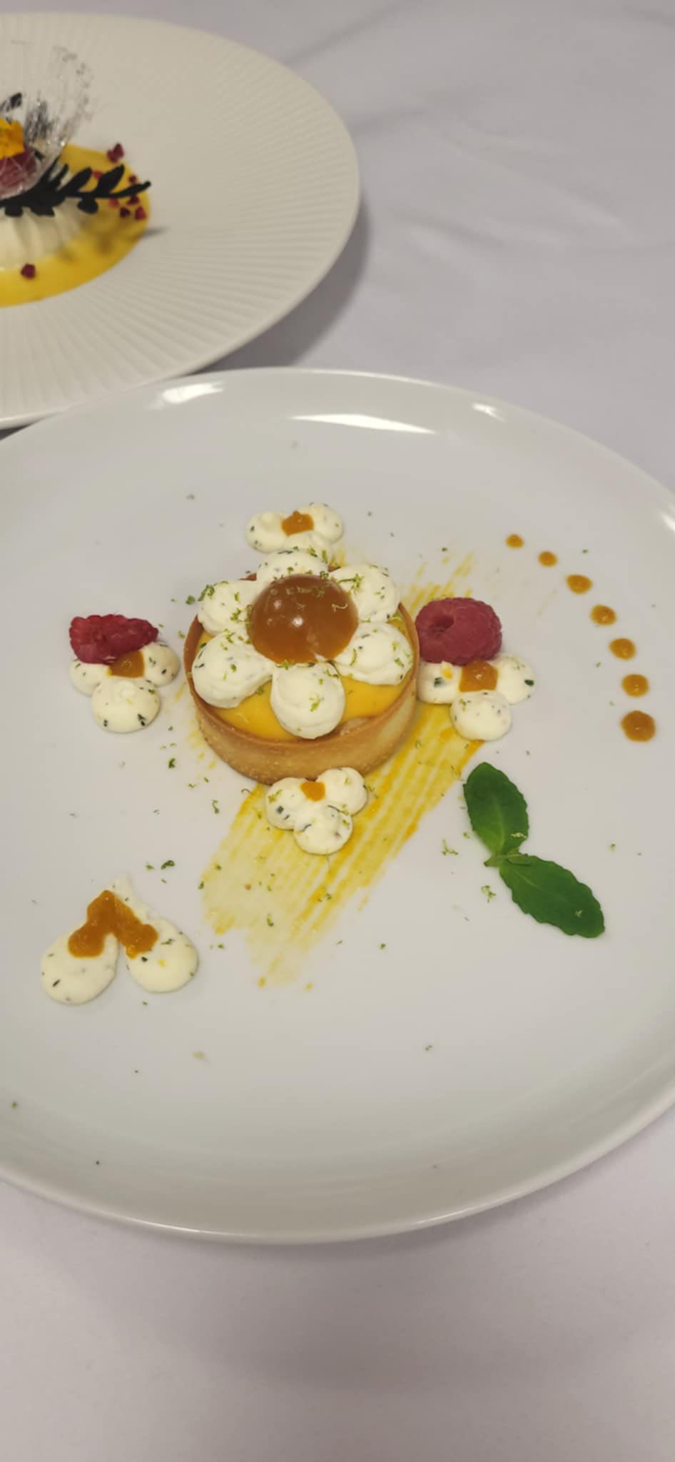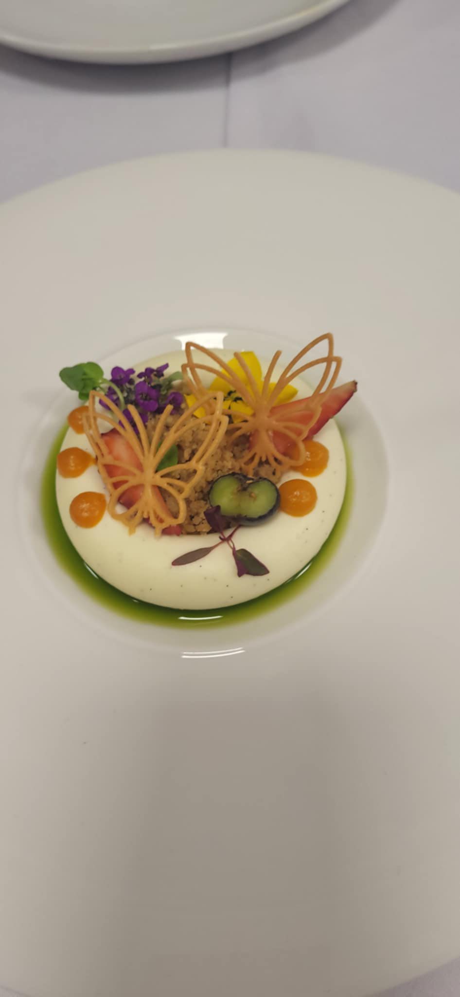 W swoich monoporcjach przygotowały mus o smaku wanilia-mango z nadzieniem z żelki o smaku mango , w otoczce z liofilizowanych malin na kokosowo-maślanej kruszonce. Jako element dekoracyjny i ciekawy pod względem tekstury zostało wykonane " szklane gniazdko" z izomaltu. Julka i Patrycja spisały się wspaniale. Dziekujemy pięknie za godne reprezentowanie szkoły, odwagę, chęci i realizowanie swoich marzeń. Opiekę nad dziewczynami pełniła Anna Kromoska - Pluta