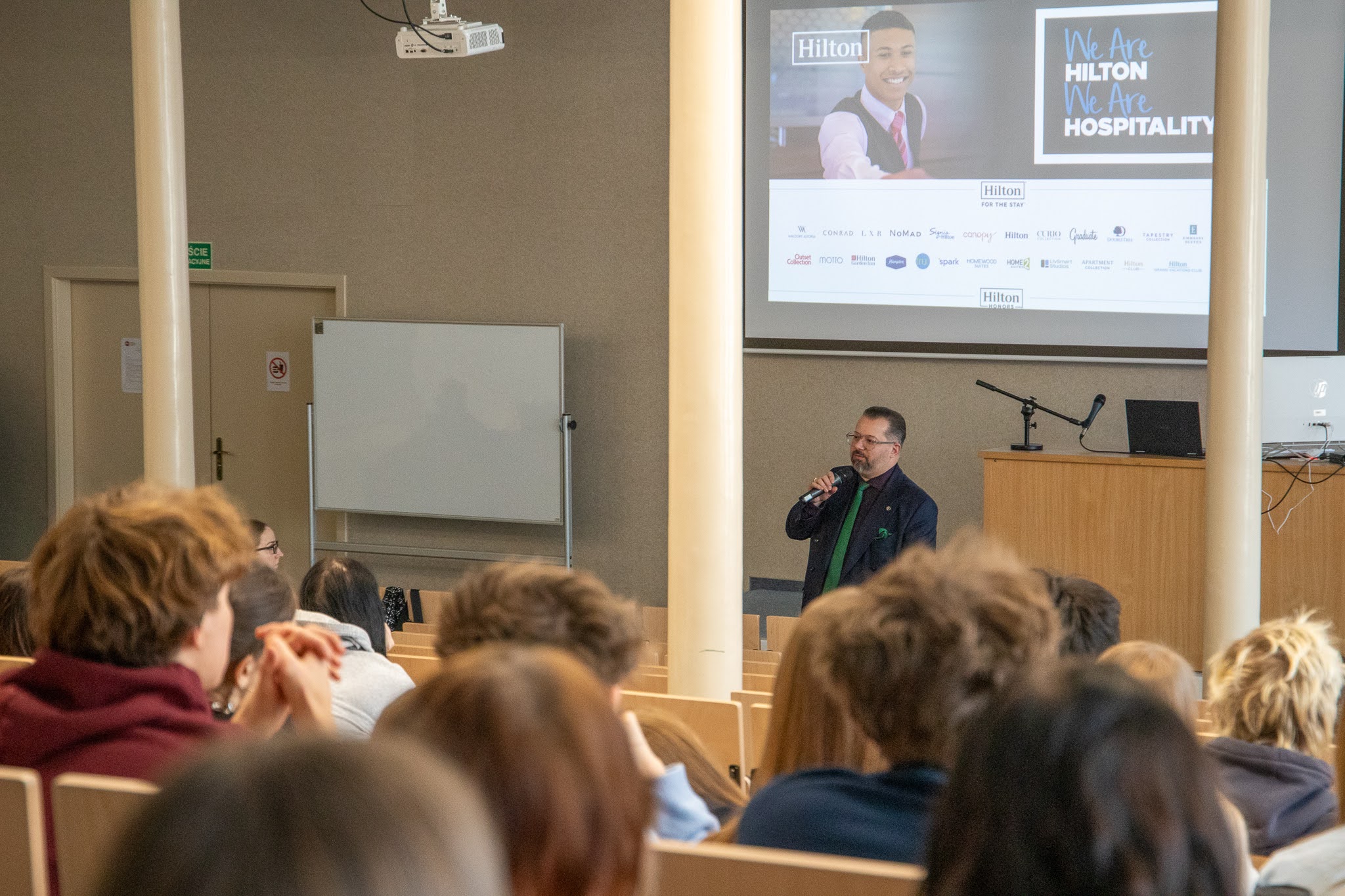 Spotkanie otworzyła Pani Dominika Florczak, Head of Marketing & Strategy AHE, prezentując ofertę uczelni oraz możliwości rozwoju studentów. Następnie Pani Monika Karolczak, pełnomocnik rektora ds. współpracy z otoczeniem, podkreśliła znaczenie współpracy uczelni ze szkołami średnimi. Informację o kierunku “Turystyka i Rekreacja” przedstawiła dr Tatiana Kazakova. Podczas spotkania uczniowie wysłuchali prelekcji dotyczących zarządzania operacjami hotelowymi, kompetencji zawodowych w branży HoReCa oraz atrakcyjności turystyki kulturowej XXI wieku. Wśród prelegentów znaleźli się m.in. Pan Tomasz Koralewski z Łódzkiej Organizacji Turystycznej, Pan Dominik Chrapek dyrektor Double Tree by Hilton, Pani Karolina Miśkiewicz, kierownik recepcji Double Tree by Hilton oraz Pani dr Ewa Gałązka, dydaktyk turystyki i rekreacji.