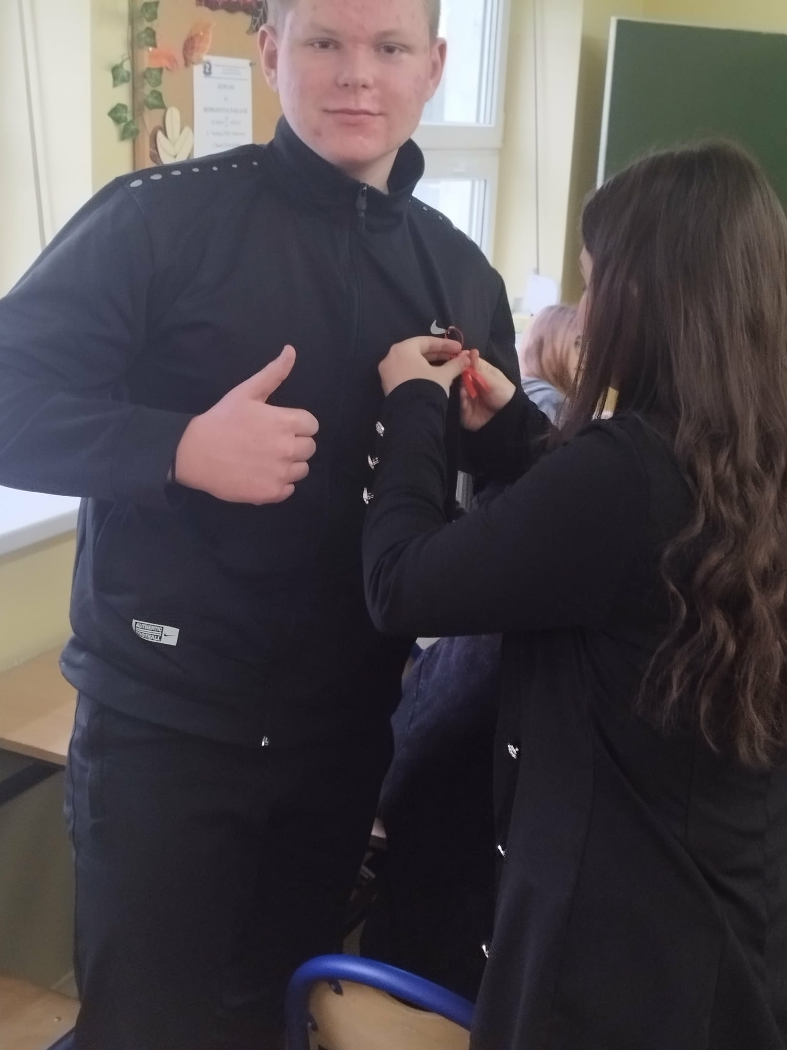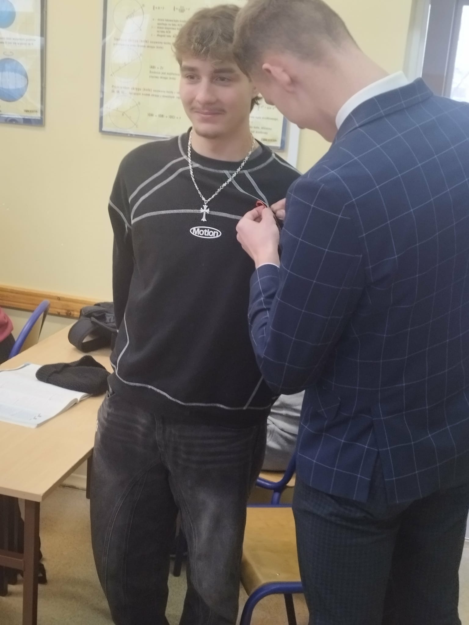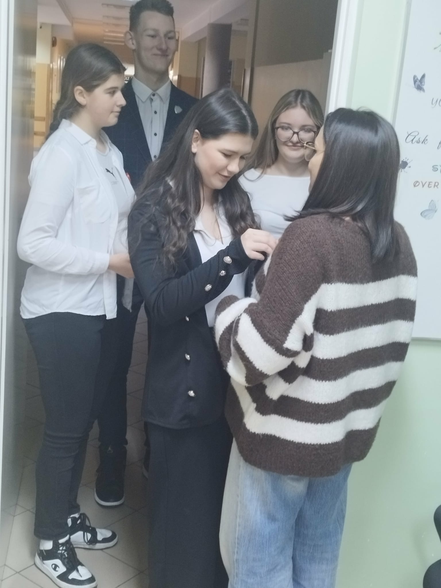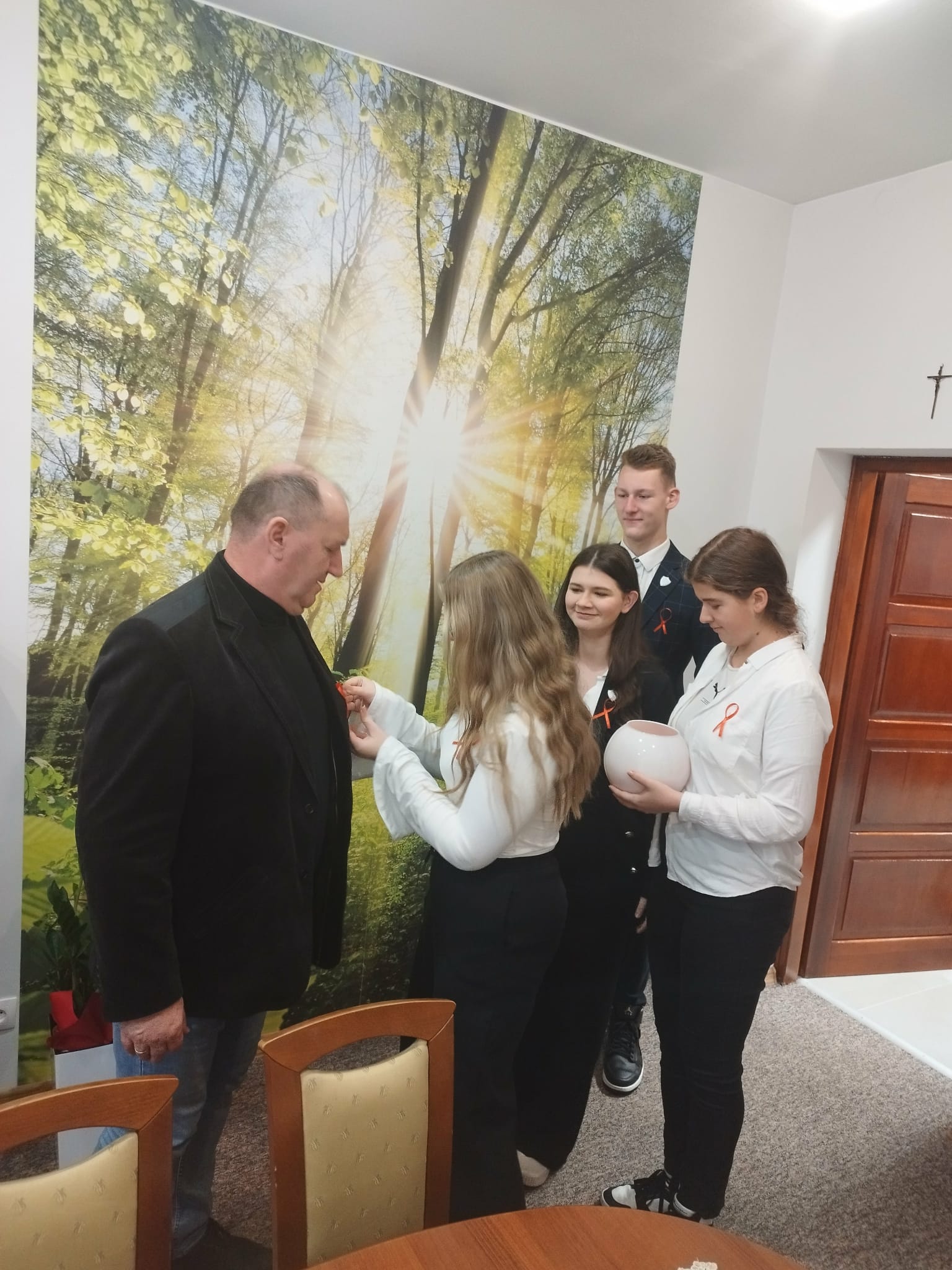 Kokardki zostały wcześniej przygotowane przez uczniów klasy 3G, a następnie podczas obchodów 1 grudnia rozdawali je i przypinali dyrekcji, nauczycielom, pracownikom szkoły oraz kolegom i koleżankom.
