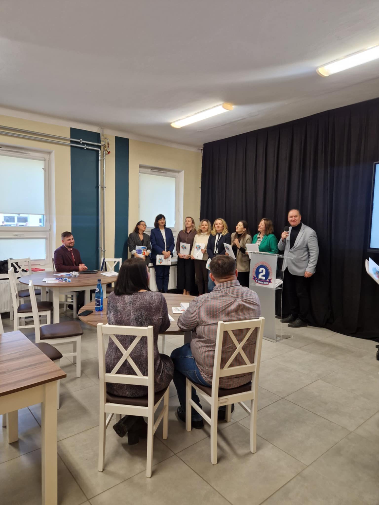 Część organizacyjno-podsumowującą przedstawiła pani Wiktoria Kin, która omówiła cele i efekty projektu oraz doświadczenia uczestników mobilności. Podczas konferencji wręczono certyfikaty uczestnikom mobilności uczniowskich oraz nauczycielom biorącym udział w działaniach typu job shadowing.