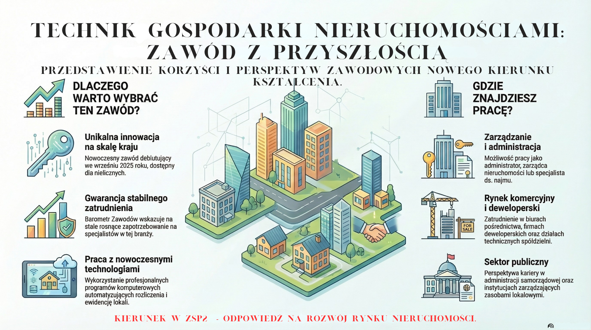 Rynek nieruchomości rozwija się szybciej niż kiedykolwiek – mieszkania, domy, działki i lokale użytkowe wymagają profesjonalnego zarządzania. Jeśli interesuje Cię biznes, prawo, finanse i kontakt z ludźmi – ten kierunek jest dla Ciebie.