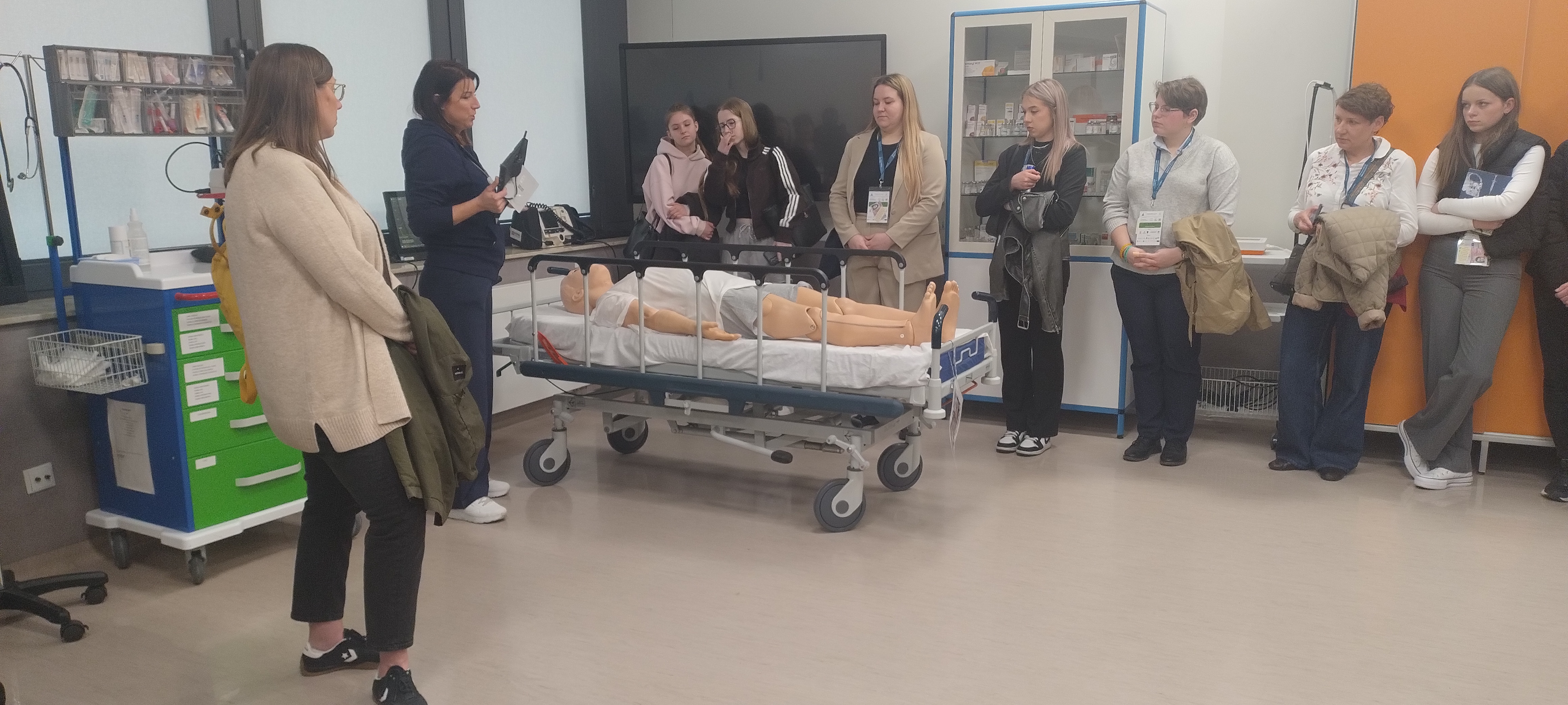 Niezwykle inspirującym punktem było także zwiedzanie Centrum Symulacji Medycznej gdzie nowoczesne technologie i innowacyjne rozwiązania edukacyjne zrobiły ogromne wrażenie na uczestnikach.