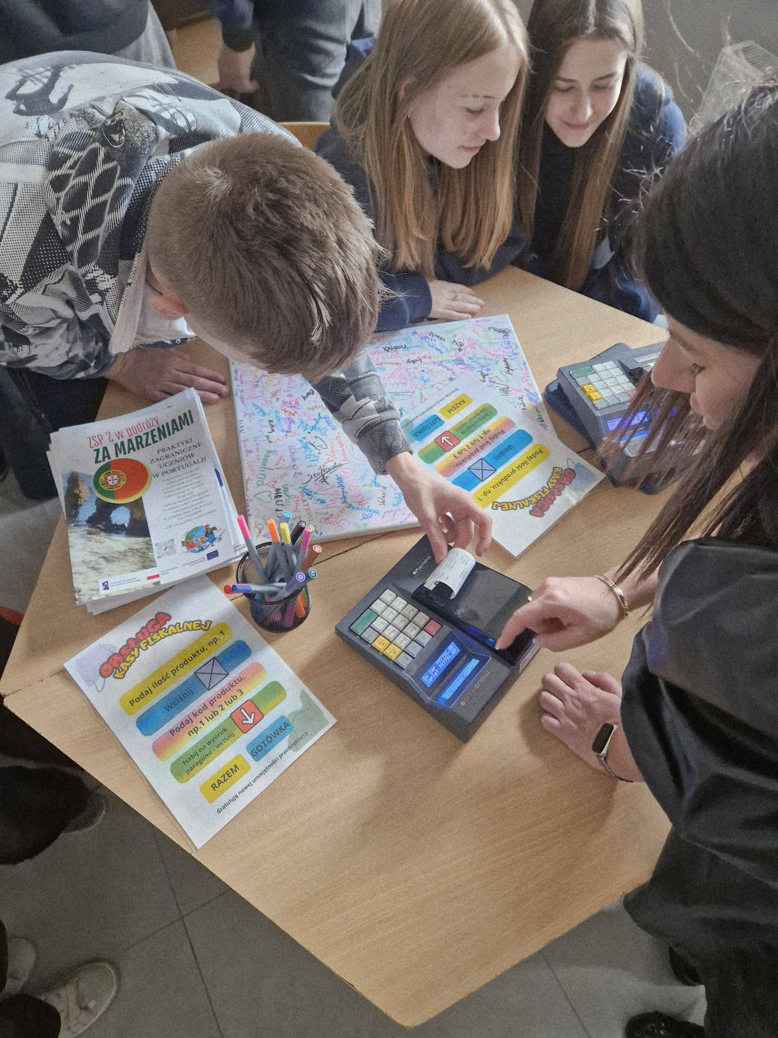 Podczas warsztatów pokazaliśmy, jak w praktyce wygląda nauka w naszej szkole — bez teorii „na sucho”, tylko konkrety i działanie. Uczniowie mogli zobaczyć, jak łączymy różne formy pracy: ? wykorzystanie telefonu jako realnego narzędzia do nauki ? pracę na mobilnej pracowni Apple ? interaktywne zajęcia z użyciem narzędzi takich jak Curipod ? gry i aktywności interaktywne tworzone przez naszych uczniów technika reklamy z wykorzystaniem Canva AI ? oraz praktyczne działania w zawodzie technik handlowiec Pokazaliśmy, że da się uczyć inaczej — łącząc świat cyfrowy z „normalną” pracą na lekcji. Bez nudy, za to z zaangażowaniem i sensem. Najważniejsze było to, że wszystko tworzyło spójną całość. Uczeń nie jest tylko słuchaczem, ale działa, sprawdza, testuje i widzi, po co się uczy. To właśnie jest nasza wartość — nauka, która łączy nowoczesne technologie z praktyką. I coś, czym naprawdę możemy się pochwalić ? Dziękujemy za wizytę i mamy nadzieję, że do zobaczenia już niedługo — tym razem w roli naszych uczniów