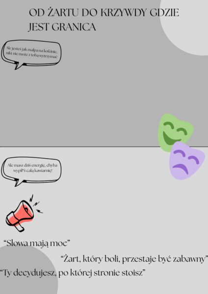 Natomiast klasa 2 technikum reklamy zaprasza do wysłuchania krótkich fiszek podcastowych, w których młodzi ludzie mówią o tym, jak reagować na przemoc i hejt.
